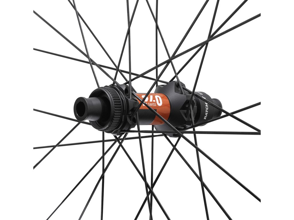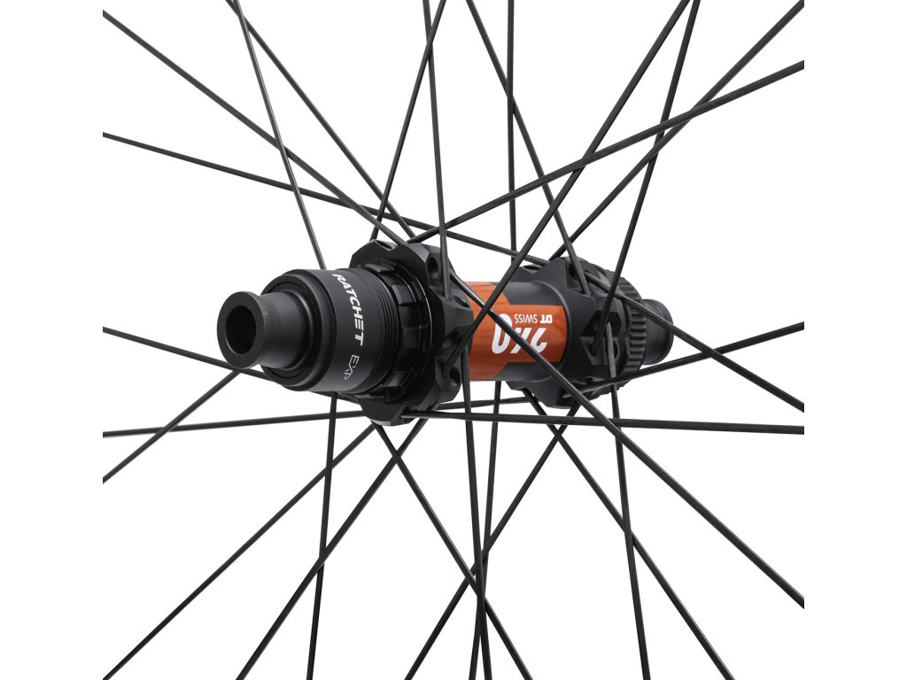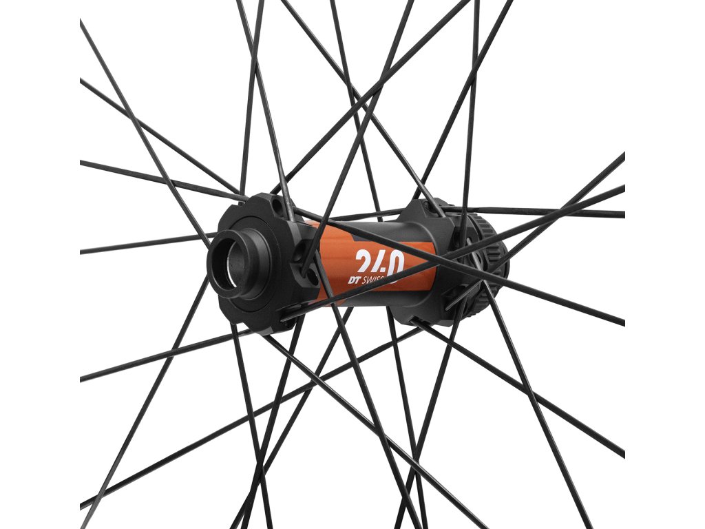 DT Swiss náboje 240S, paprsky Aerolite, super tuhý a odolný karbonový ráfek s celkovou hmotností kol 1 420 g. Jedná se o top model z kolekce Equator.