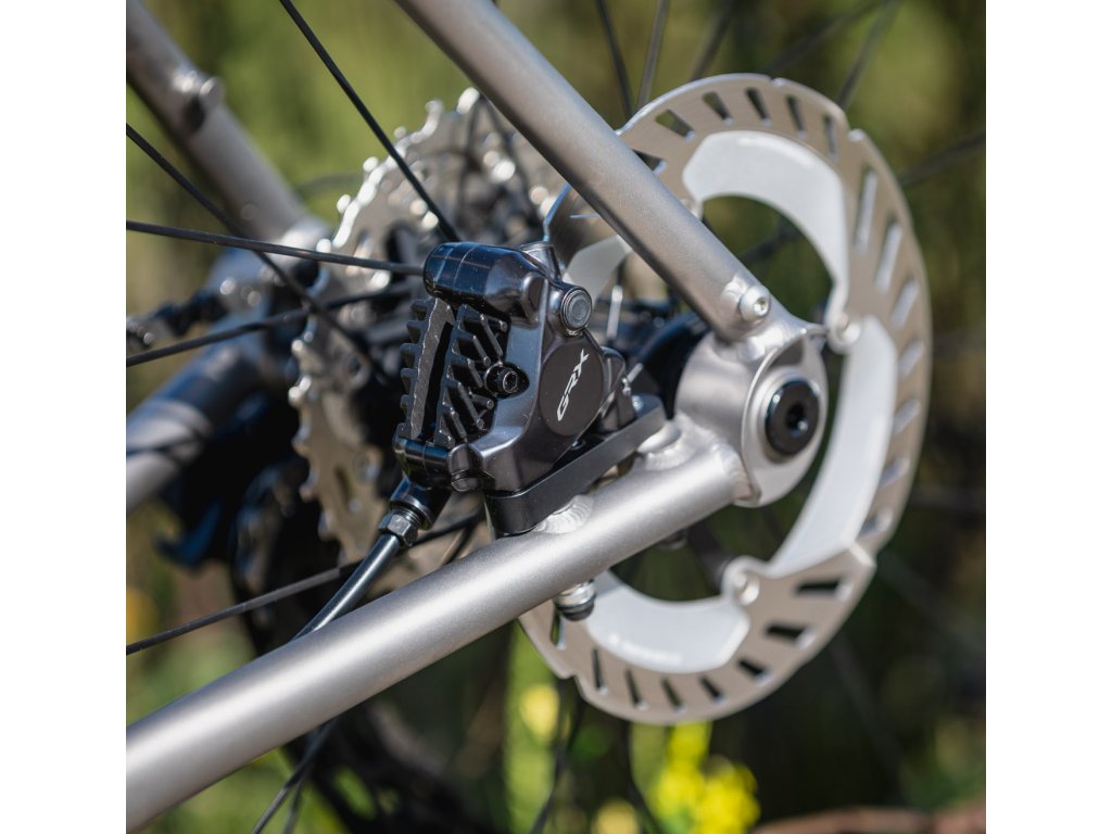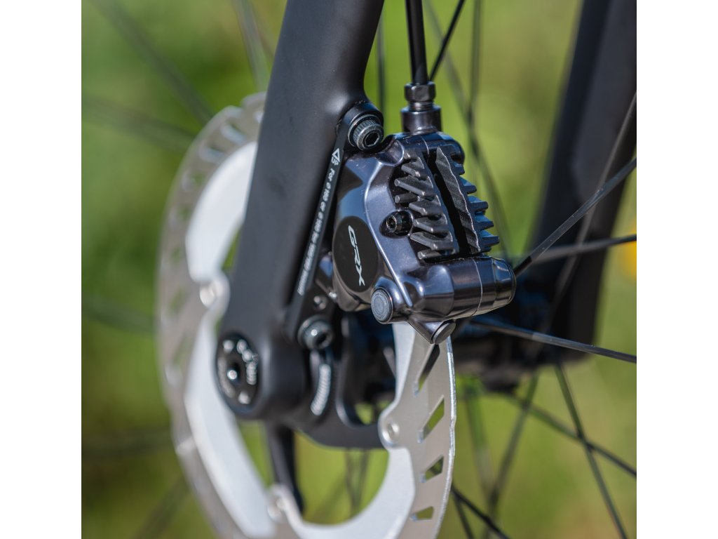 Rám je z výroby připraven pro gravelové flat mount třmeny. Uchycení post-mount třmenů lze pomocí adaptéru.