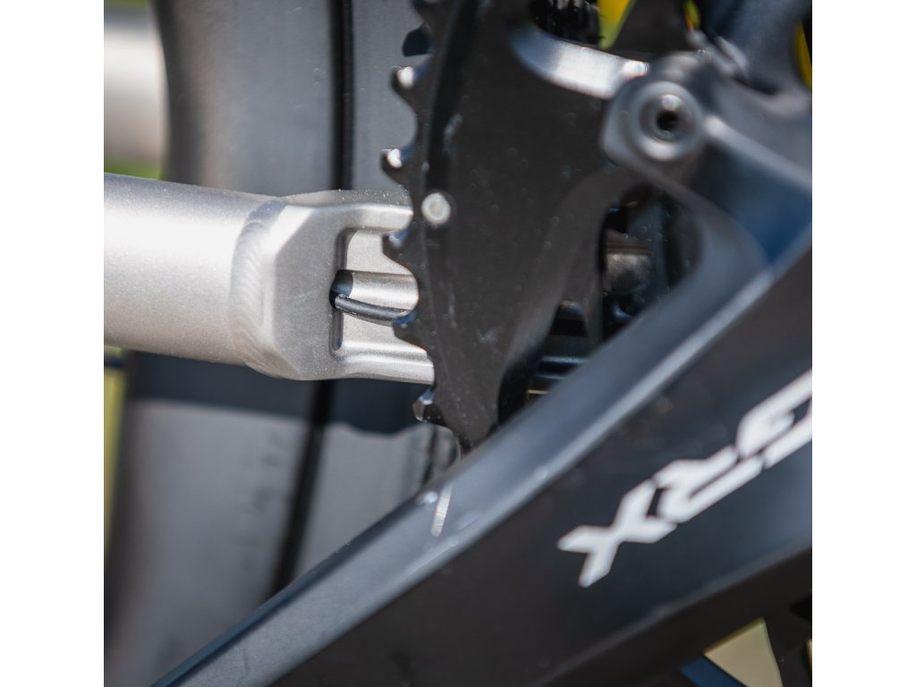 3D tištěný dvojitý střed zcela odděluje prostor na kabely od prostoru osy. Nedojde tak k nežádoucímu tření ani v případě, kdy není osazena vnitřní plastová krytka. Lanka jsou vedena vnitřkem řetězových vzpěr a lze je snadno zkontrolovat po odšroubování spodního víčka.