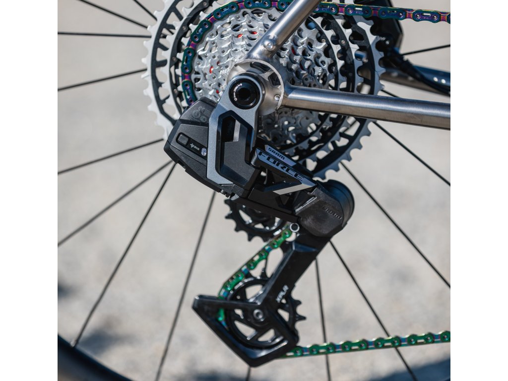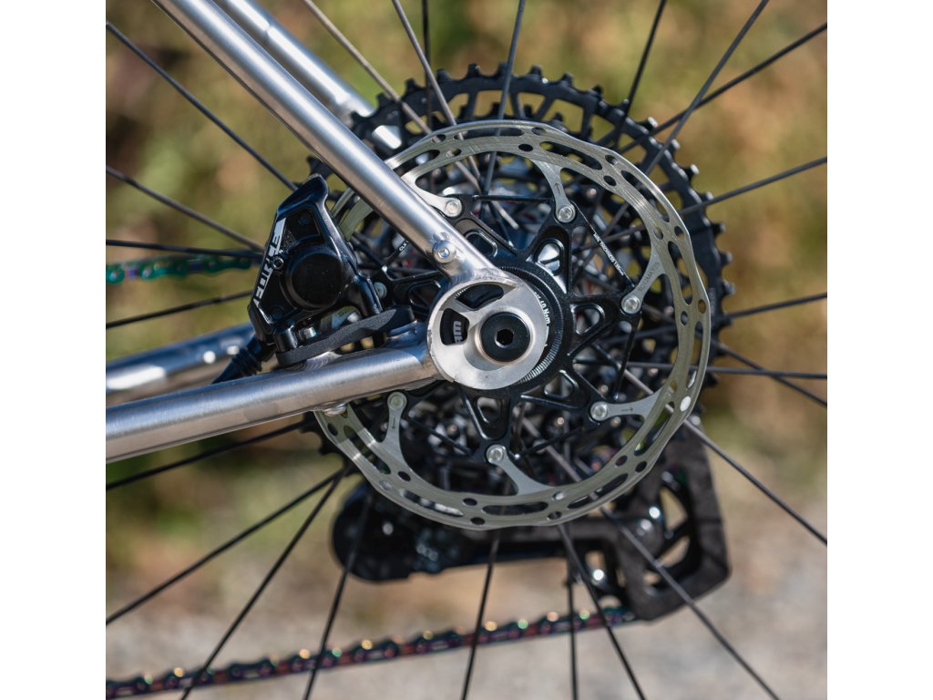 Rám je připraven na elektronickou nebo mechanickou 1x sadu s maximální velikostí převodníku 46T (42 - 44T v případě oválu).