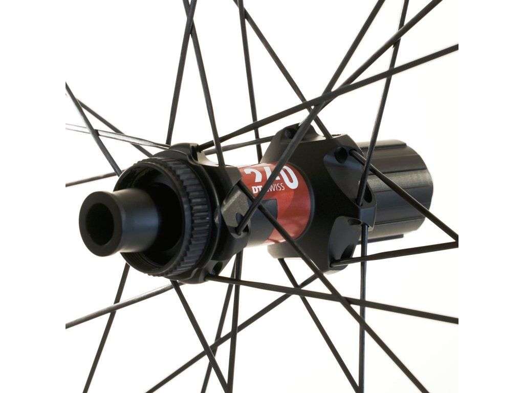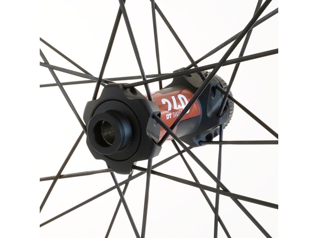 Náboje DT Swiss 240S, špice Aerolite, mimoriadne tuhý a odolný karbónový ráfik s celkovou hmotnosťou 1 420 g. Ide o najvyšší model kolekcie Equator.
